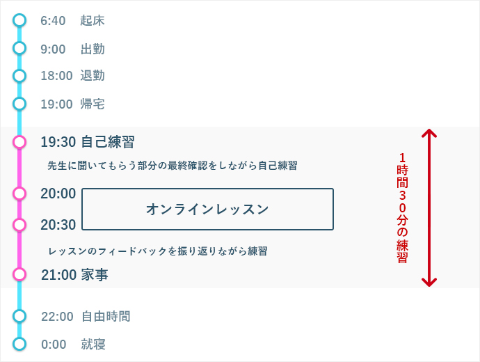 また実際にオンラインレッスンに通われている生徒様の一日をお聞きしましたので参考にしてみてください。